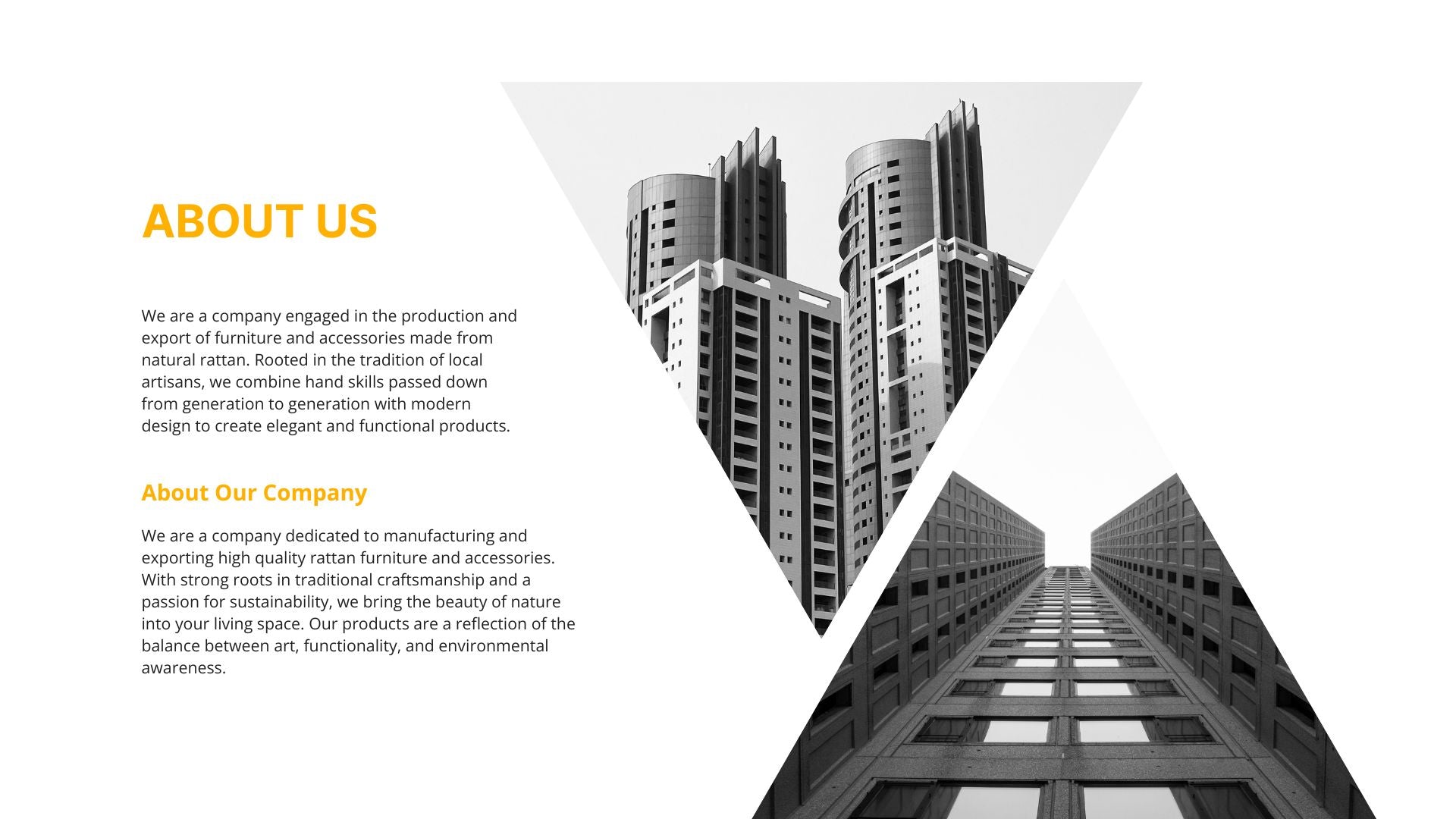 We are a company engaged in the production and export of furniture and accessories made from natural rattan. Rooted in the tradition of local artisans, we combine hand skills passed down from generation to generation with modern design to create elegant and functional products.