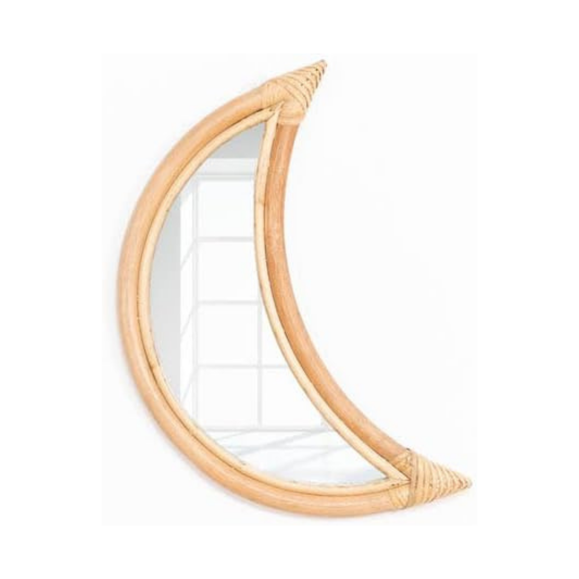 Boho Crescent Moon Rattan Mirror – Natural Wall Decor